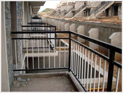 小區(qū)陽臺(tái)護(hù)欄采用優(yōu)質(zhì)熱鍍鋅方管,靜電噴塑而成